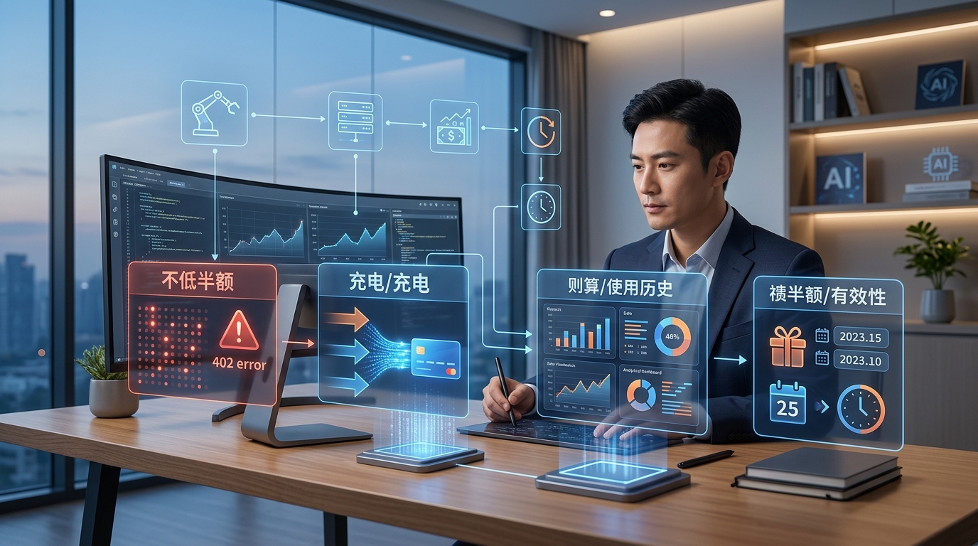 把 402 余额不足、充值入口、账单页和赠送余额有效期拆开讲,方便你判断该充值、查账单还是查赠送额度。